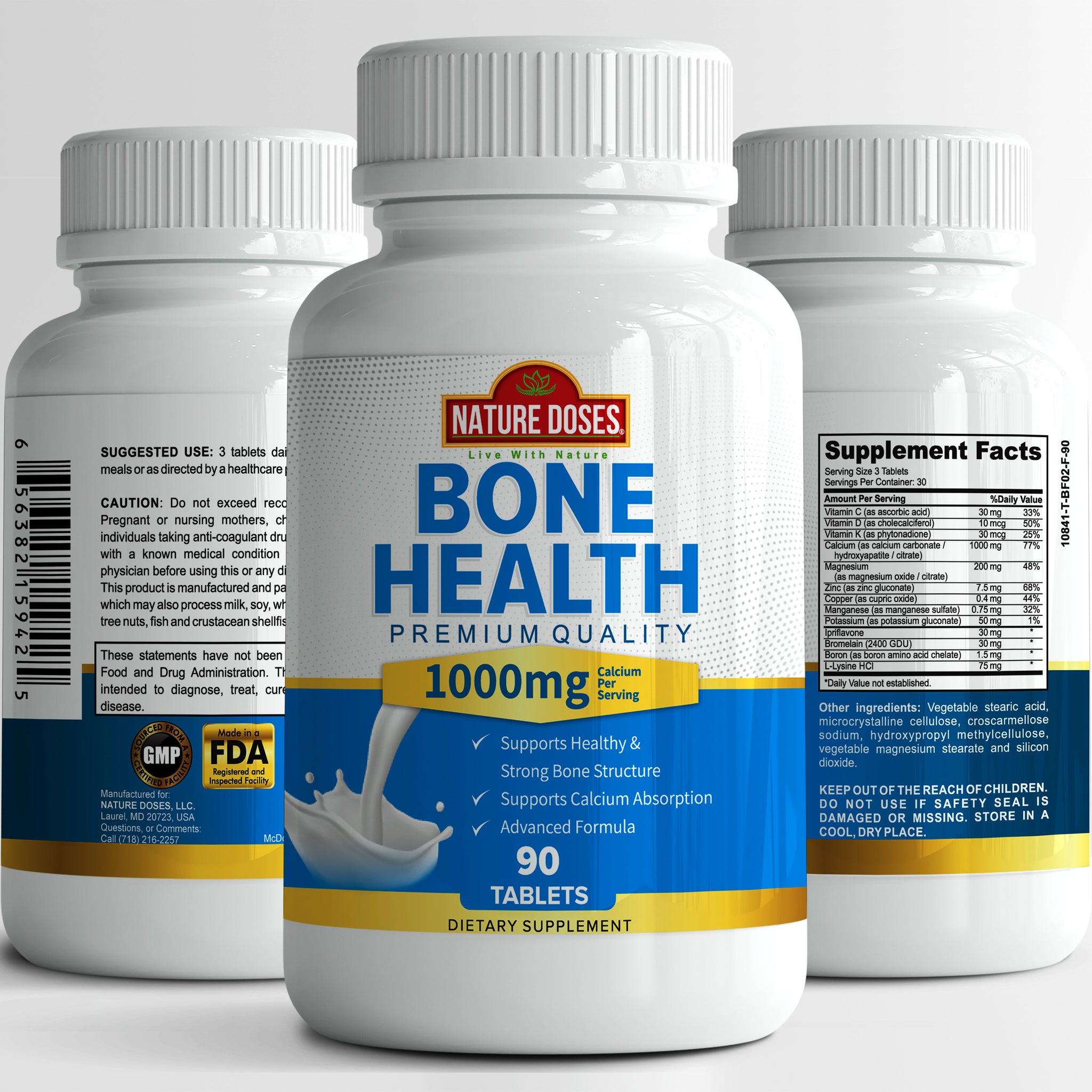 Calcium consumption is very important to maintain bone density and strength in our body. However, adequate amount of other nutrients such as Vitamin C, D-3, K-1, Magnesium, Zinc, Copper, Manganese, Potassium, Boron, Ipriflavone, Bromelain, and L-Lysine HCl are crucial requirement for healthy bone in additional to Calcium. Nature Doses Bone Health is premium quality dietary supplement to meet your daily nutrients with advanced formula.