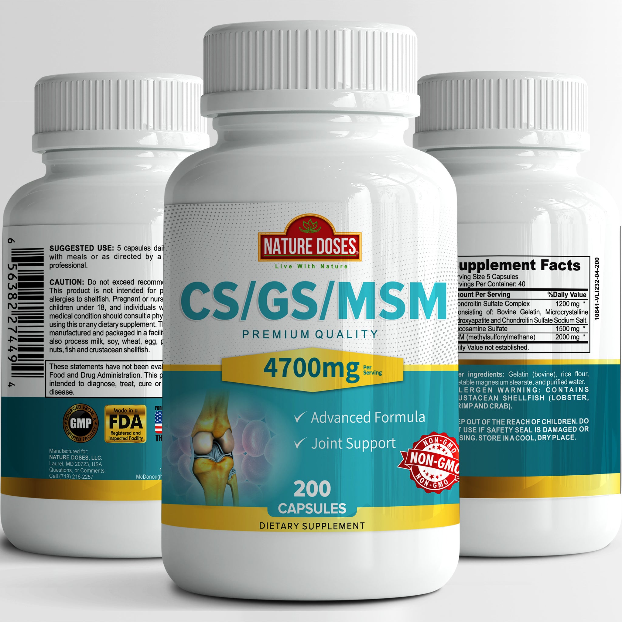 Nature Doses Glucosamine Sulfate (GS), Chondroitin Sulfate Complex (CS), and Methylsulfonylmethane (MSM), Supports Healthy Joint, Premium Quality Capsules, 200
