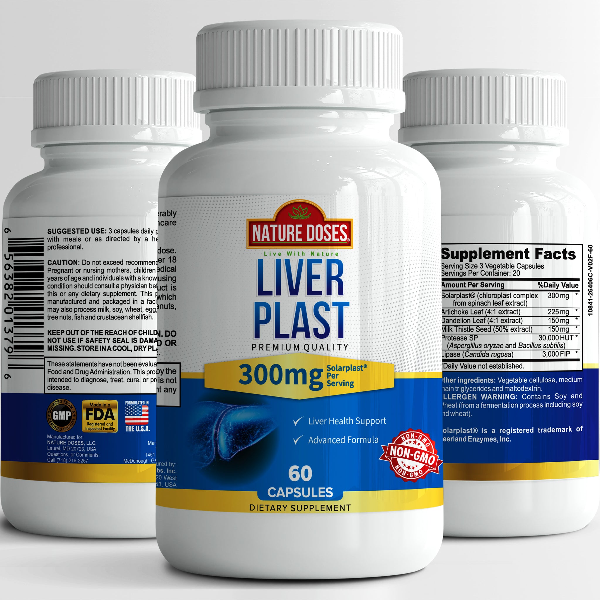 Nature Doses Liver Plast - Premium quality dietary supplement supports Liver Health for Men & Women - Milk Thistle with Solarplast to Boost Energy & Immune System - 60 Vegetable Capsules - Made in USA