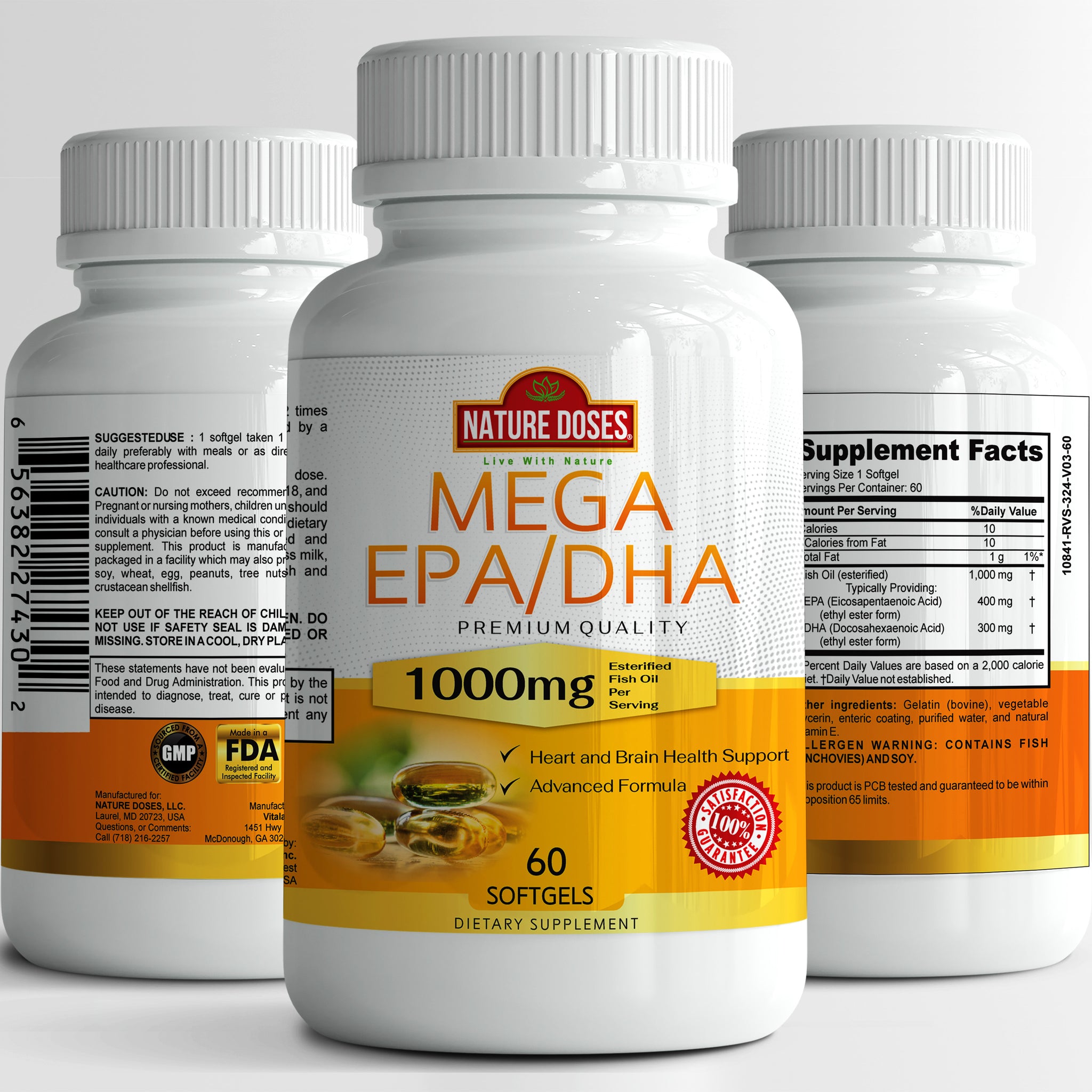 Nature Doses Mega EPA/DHA, Premium Quality 60 softgels, Fish Oil Supplement with EPA & DHA - Promotes Heart & Brain Health - Non-GMO - 60 Servings